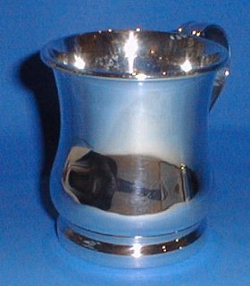 Silver christening mug.
