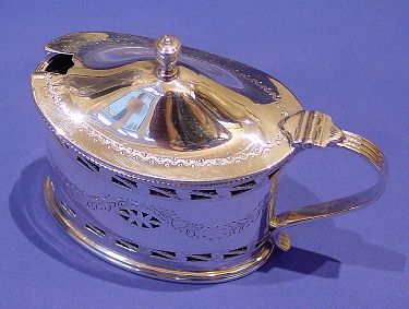 A silver mustard pot.