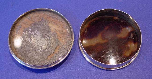 Charles II silver and tortoiseshell patch box.