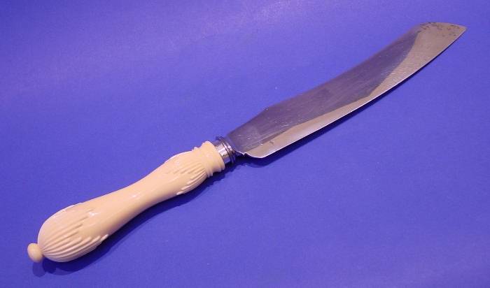 Victorian silver and ivory bread/cake knife in a fitted case.