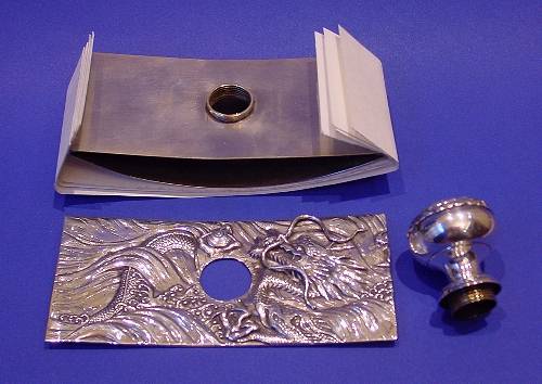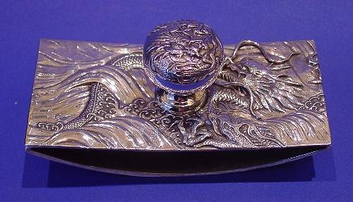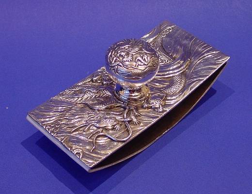 Chinese export silver and steel desk blotter.