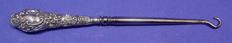 Edwardian silver & steel button hook.