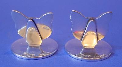Silver "fox" menu holders.