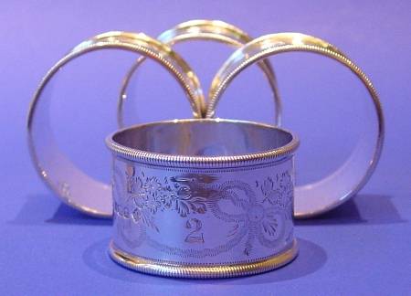 A set of 4 Edwardian silver napkin rings, numbered 1 to 4.