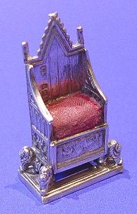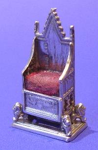 Edwardian silver "Corination chair" pin cushion.