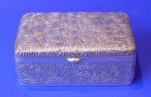 Chinese Export Silver "Bamboo Grass" Trinket Box.