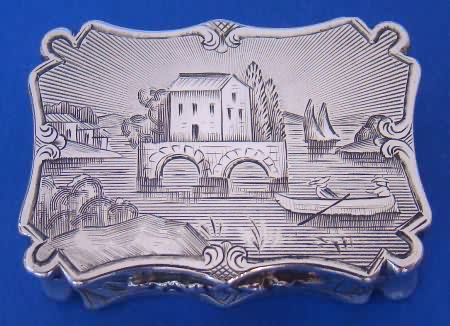 Engraved with River & Bridge Scene