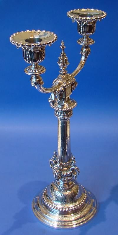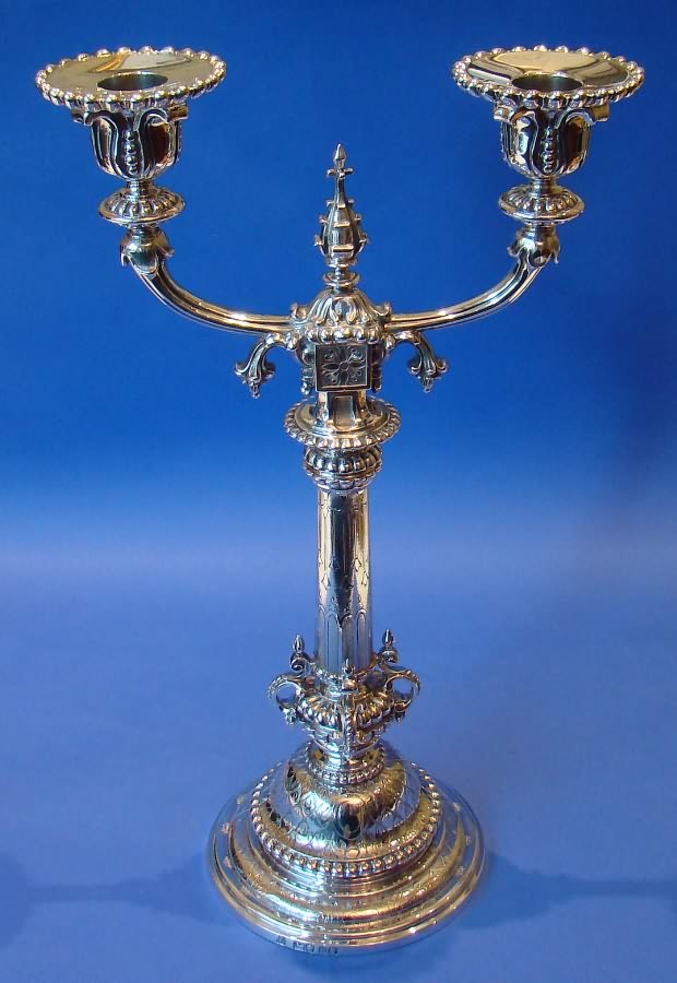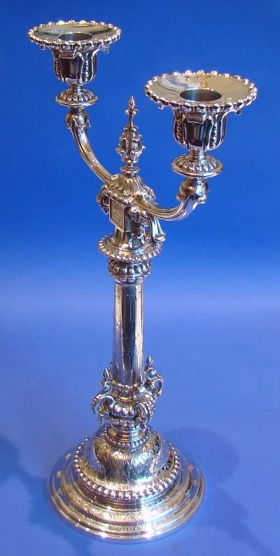 Victorian Cast Silver 'Gothic Revival' Candlestick.