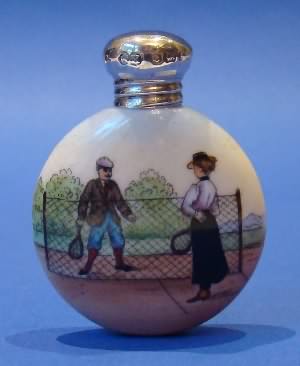 Edwardian Silver & Porcelain 'Tennis' Scent Bottle.