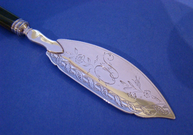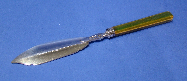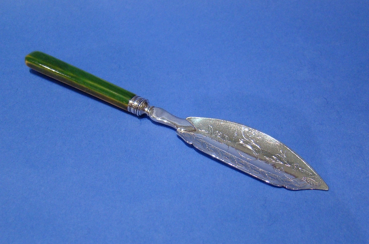 George III Silver Butter Knife with Green Stained Ivory Handle
