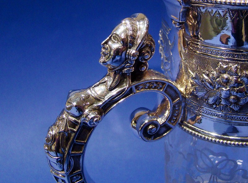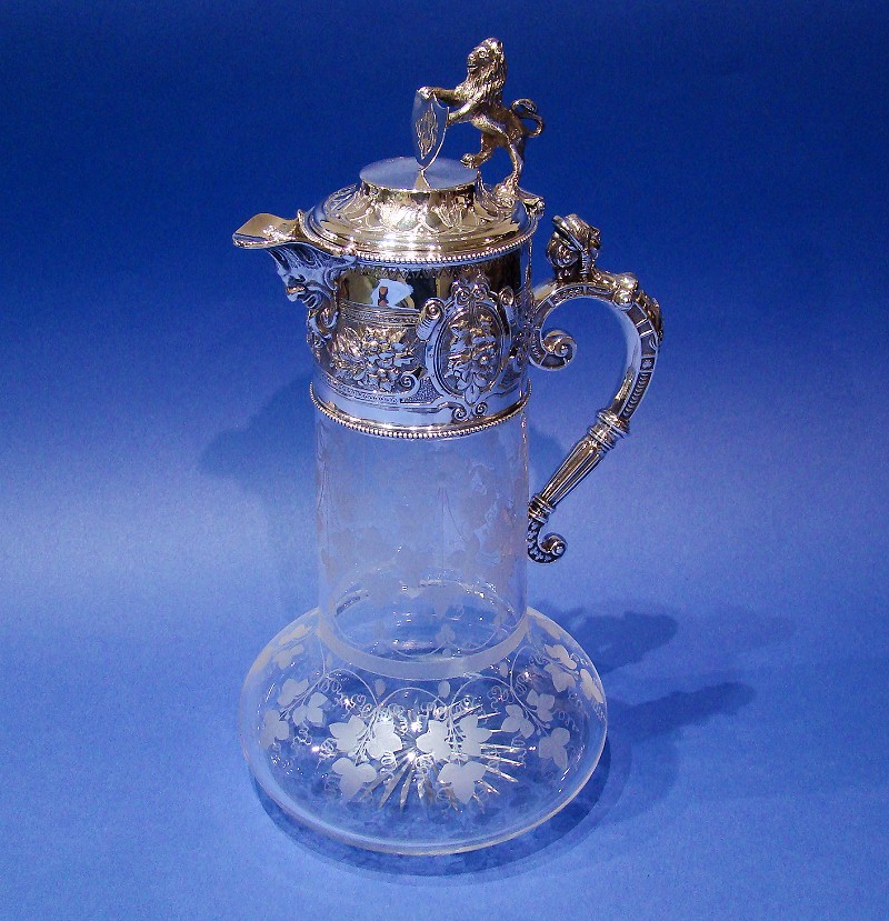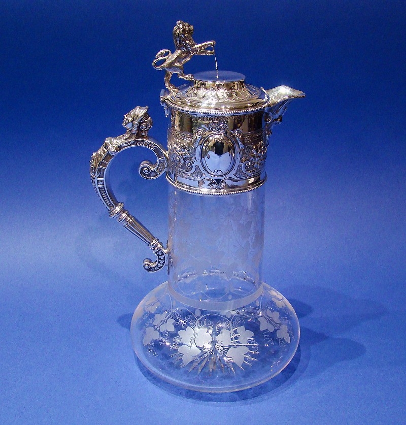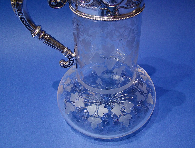 Victorian Silver Acid-etched Glass Claret Jug