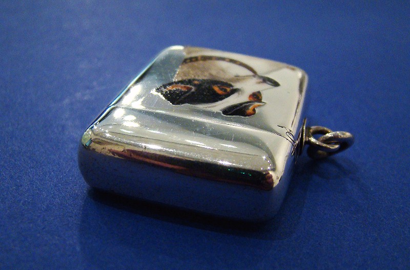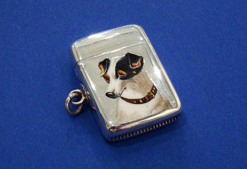 Victorian Silver & Enamel 'Dog's Head' Vesta Case/Match Safe
