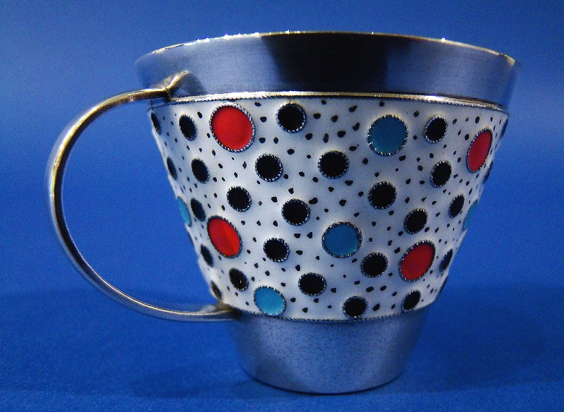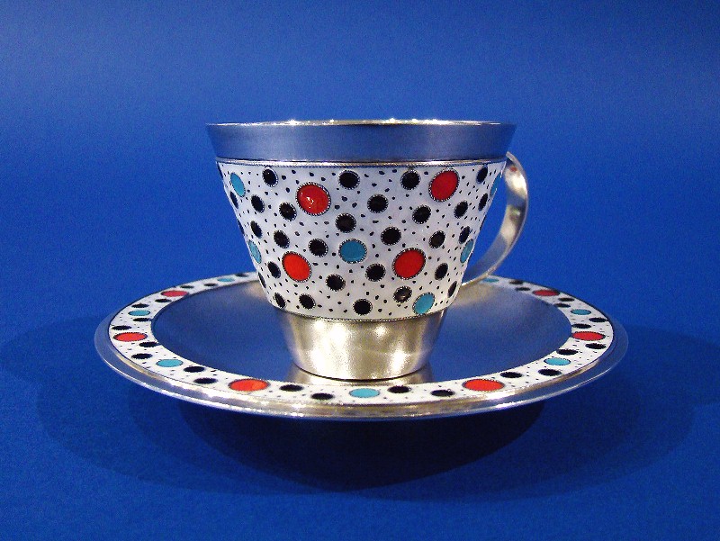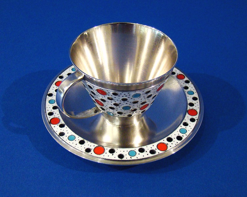 Soviet Union Silver & Enamel Vodka Cup & Saucer