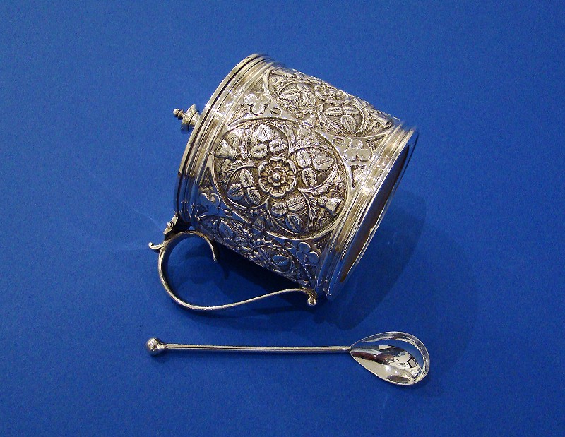 Victorian Silver 'Roses, Thistles & Shamrocks' Mustard Pot