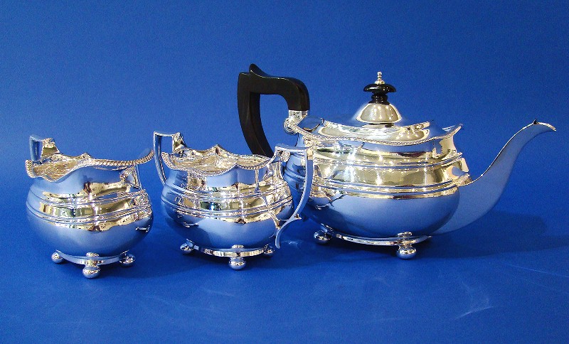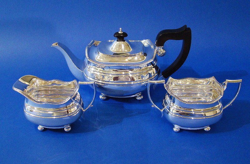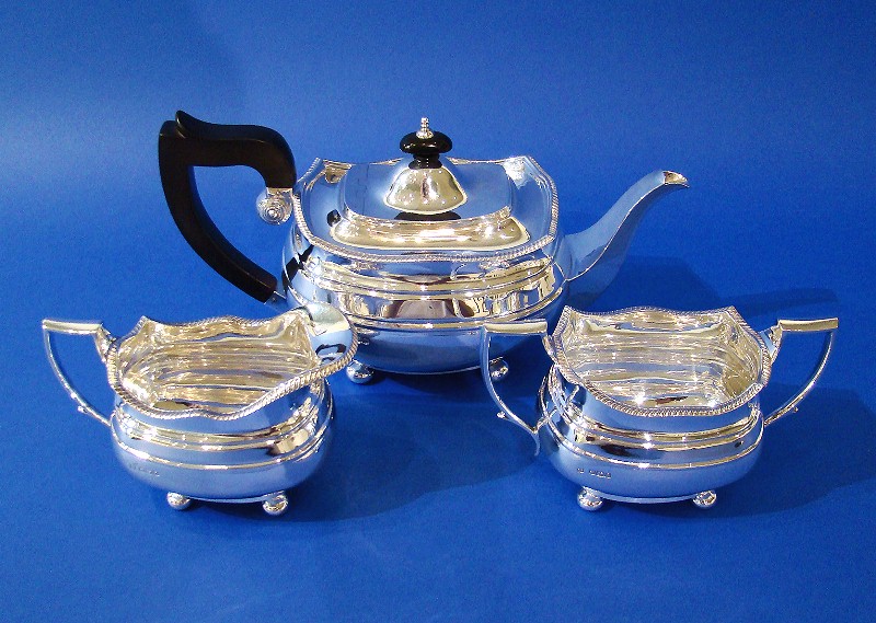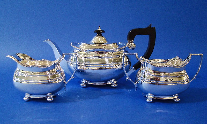 Silver 3-Piece Tea Set with a Gadrooned Wavy Border
