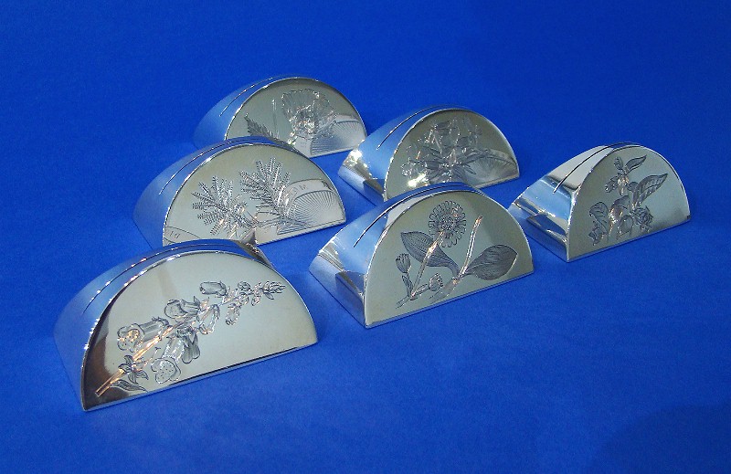 Set of 6 Silver 'Flowers' Menu/Name Place Markers