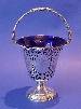 Victorian silver basket with blue glass liner.