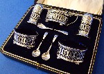 Edwardian Silver 'Curling Stones' Cruet Set.