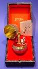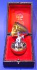 A silver parcel gilt egg with a bear inside, cased.