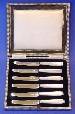 A set of six Art-Deco silver & mother of pearl tea knives in a fitted case.