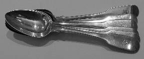 | 140. | Newcastle silver Fiddle pattern Basting spoon, 1794 by Thomas Watson with contemporary dragon crest. L-30cm; W-114g. ~ This is a superb Newcastle piece; it is very clean indeed with again a very low reserve. Est. £250-350. | £100 |
