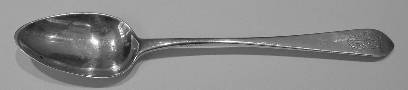 | 14. | China Trade Export silver, Fiddle Thread & Shell pattern dessert spoon, circa 1830 by SS, engraved 'Jerusalem House'. L-17.7cm; W-60g. ~ a rare spoon. Est. £40-60. | £30 |