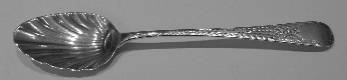| 20. | George III silver bright-cut teaspoon with shell bowl, London 1803 by R.C. L-13cm; W-12g. ~ marks clear, but I feel that the shell bowl has been pressed at a later date. Est. £20-25. | £20 |