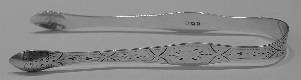 | 25. | Victorian silver 'fancy' pierced sugar tongs with claw feet. Birmingham 1895 by L&S. L-8.5cm; W-14g. ~ good condition, a different design for the collector. Est. £25-30. | £20 |