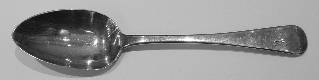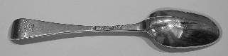 | 51. | Aberdeen silver Old English pattern tablespoon, circa 1810 by William Jameson. L-20.5cm; W-61g. ~ a really good spoon with thick stem. Est. £50-60. | £50 |