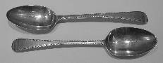 | 36. | Pair of George III silver bright-cut edge Old English pattern tablespoons, London 1778 by T. Langford II. L-21.5cm; W-123g. ~good gauge, marks & cond., tiny wear to bowl. Est. £70-90. | £70 |