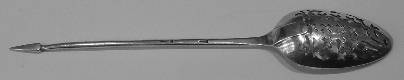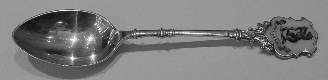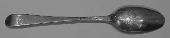 | 90. | 18th century silver Hanoverian picture-back 'heart of Oak' teaspoon, c.1760 by 'I.S'. L-11.6cm; W-11g. ~ picture in good condition, wear to tip of bowl, marks good. Est. £90-110. | £90 |