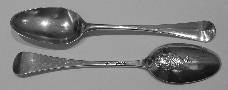 | 62. | Pair of George III silver Old English pattern egg spoons, London 1796 by George Smith & William Fearn. L-11.2cm; W-27g. ~ of very good gauge & condition. Est. £30-40. | £30 |