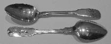 | 63. | Pair of George III silver shell-back Hanoverian teaspoons, London c.1765 by Ebenezer Coker. L-11.4cm; W-19g. ~ old repair to one stem, both with a couple of knocks to bowl. Est. £20-30. | £16 |