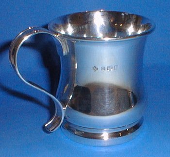 Silver christening mug.