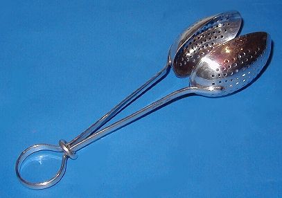 A silver tea infuser.