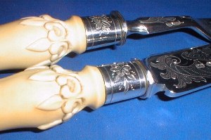 Length of knife, 10" (25.5cm), fork 9" (22.75cm).