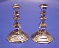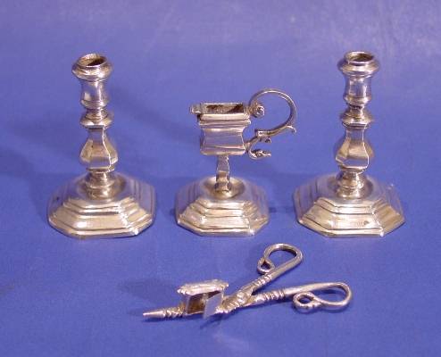 Pair of Dutch 18th century silver miniature candlesticks with snuffers and stand.