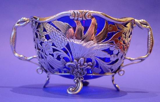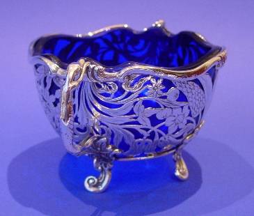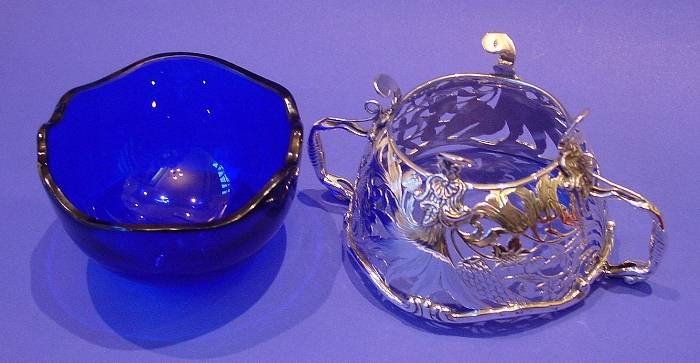 Dutch silver & glass sugar bowl.
