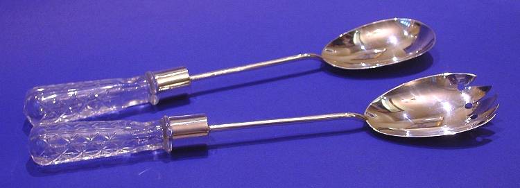 Silver & glass salad servers.