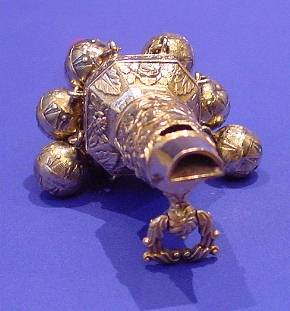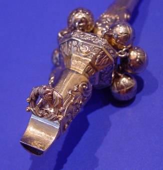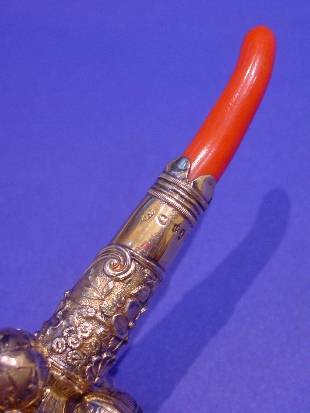 George IV silver gilt & coral baby's rattle.