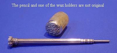(The pencil and one of the wax holders are not original).