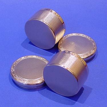 A pair of silver gilt pots.