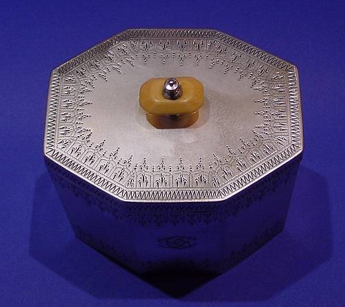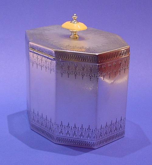 Victorian silver & ivory tea caddy.