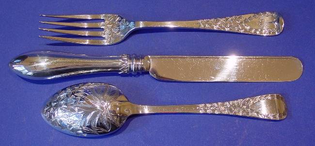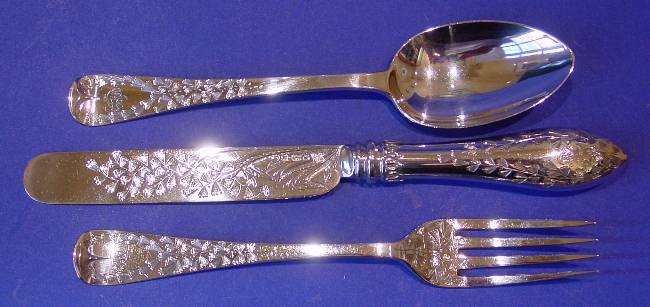Victorian Antique Silver Child's Knife, Fork & Spoon in a fitted case.