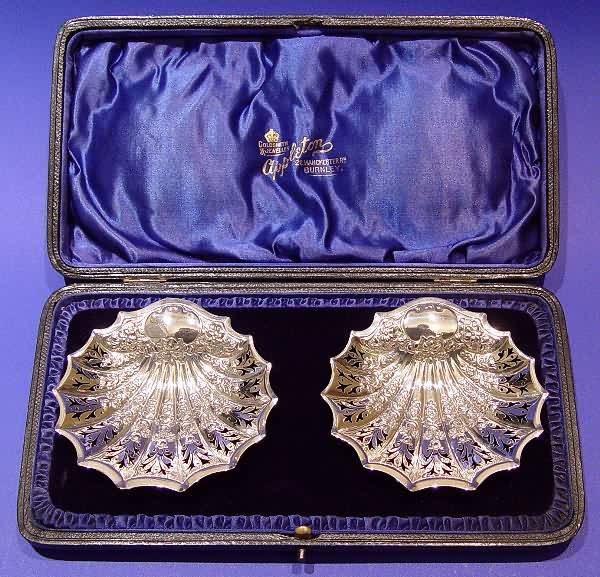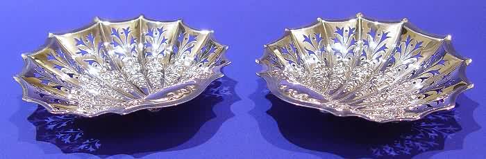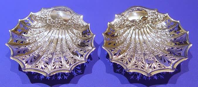 A pair of Edwardian silver bon bon dishes in a fitted case.