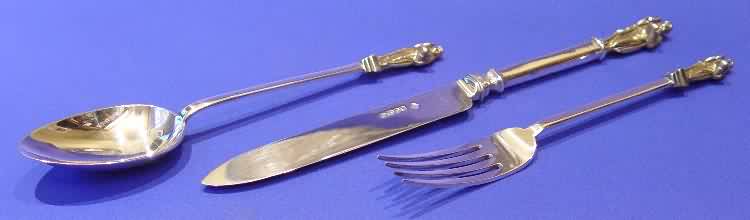 Victorian silver "Apostle" knife, fork & spoon in a fitted case.