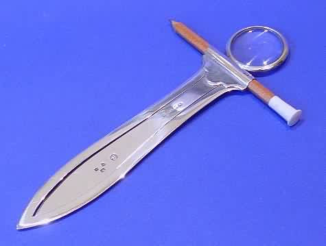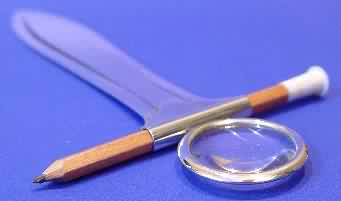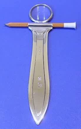 Victorian silver bookmark, magnifying glass & pencil holder.