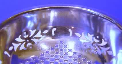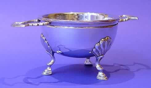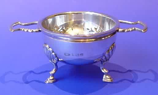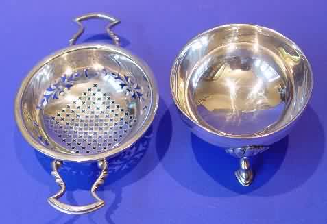 Silver tea strainer & stand.