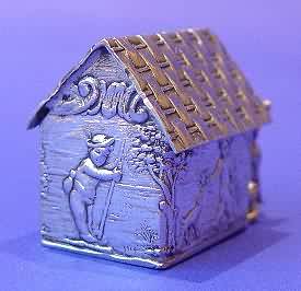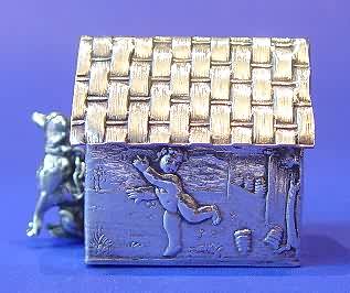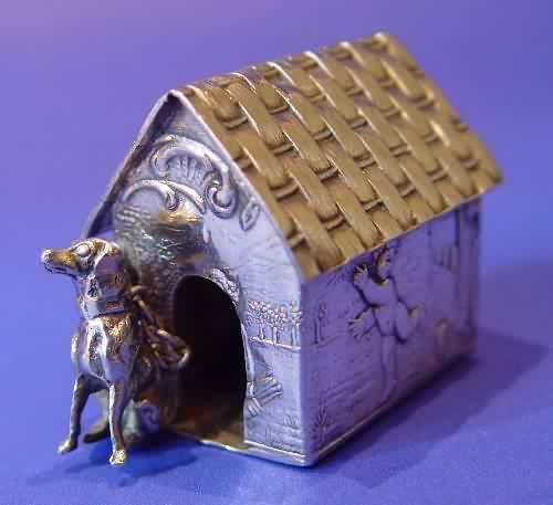 Victorian silver miniature dog & kennel.