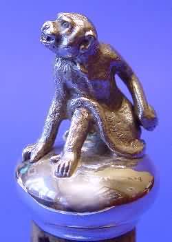 Victorian silver "monkey" bottle stopper.